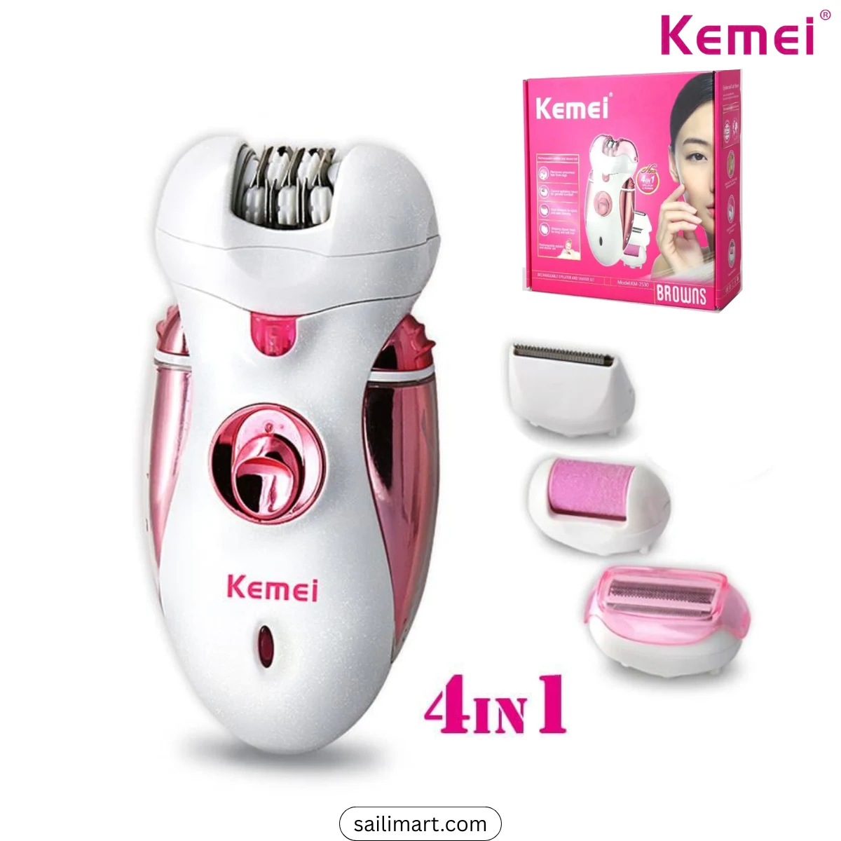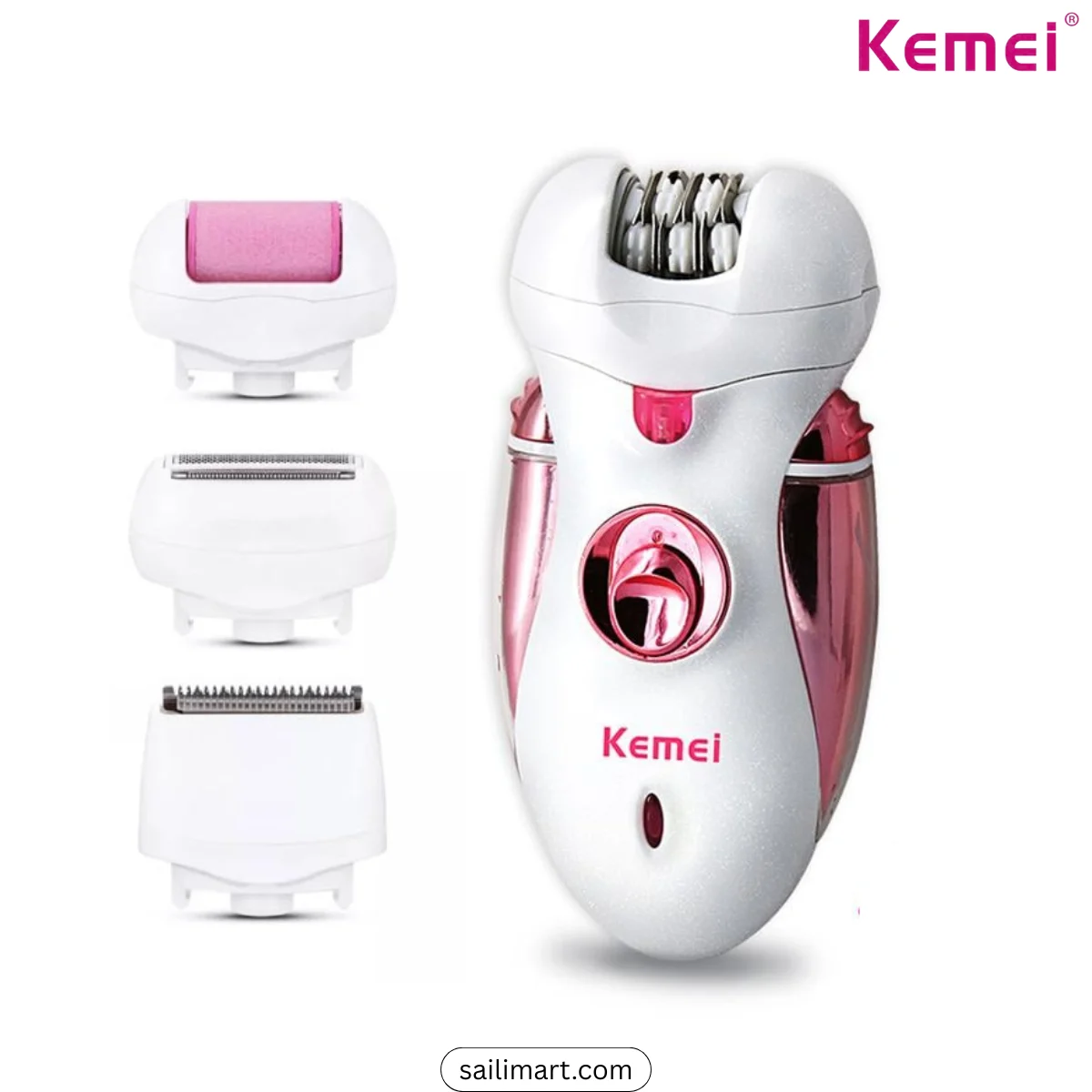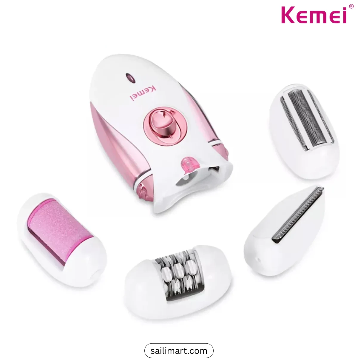 Kemei KM-2530 Epilator is a versatile, 4-in-1 rechargeable women’s shaver perfect for face and body hair removal. It offers up to 45 minutes of cordless use with adjustable speeds for a customized grooming experience.
