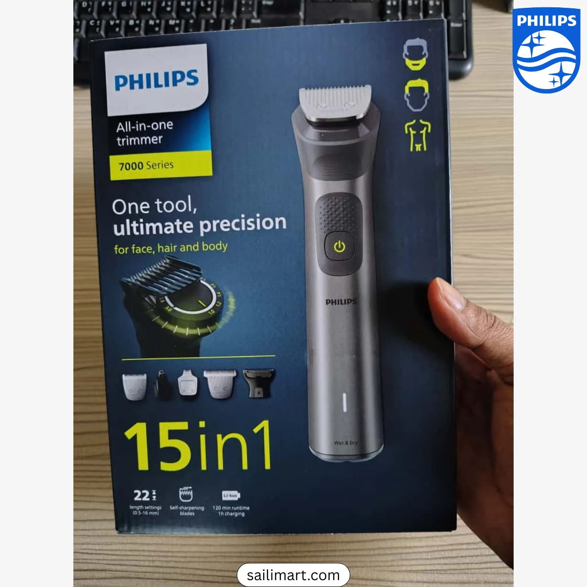 The Philips MG7940/15 (15-in-1) is a versatile all-in-one groomer designed for face, hair, and body trimming. Equipped with BeardSense technology, it adjusts motor power according to hair density for consistent and precise trimming. The self-sharpening stainless steel blades ensure long-lasting sharpness, while 22 length settings (0.5–16 mm) provide ultimate styling flexibility.