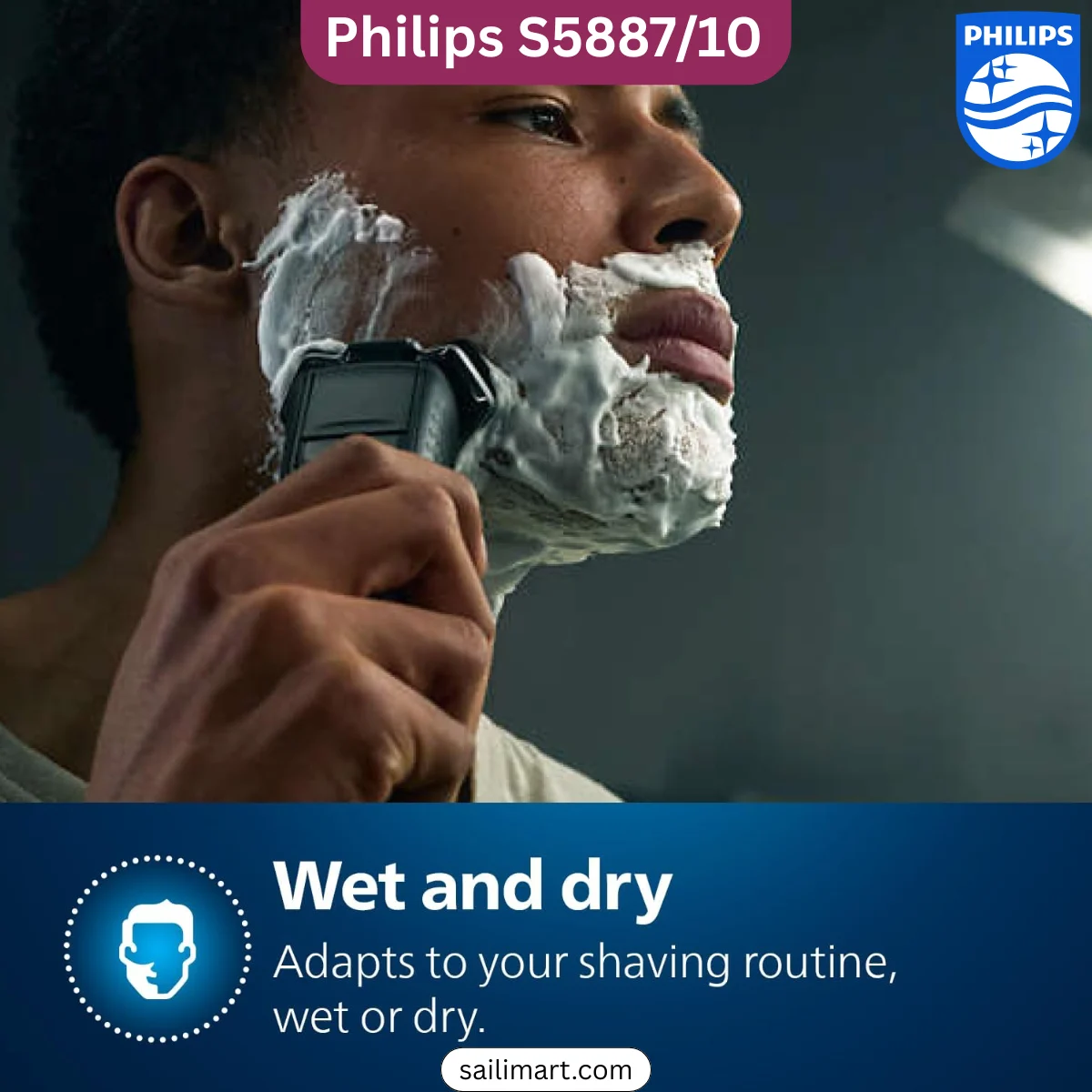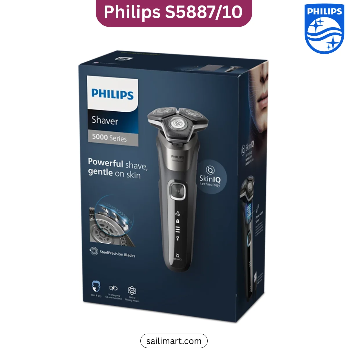 The Philips S5887/10 Shaver Series 5000 is a powerful and skin-friendly rotary shaver designed for a smooth and effortless grooming experience. With advanced SteelPrecision blades, intelligent SkinIQ technology, and flexible shaving heads, it delivers fast, precise, and comfortable shaving whether used wet or dry.
