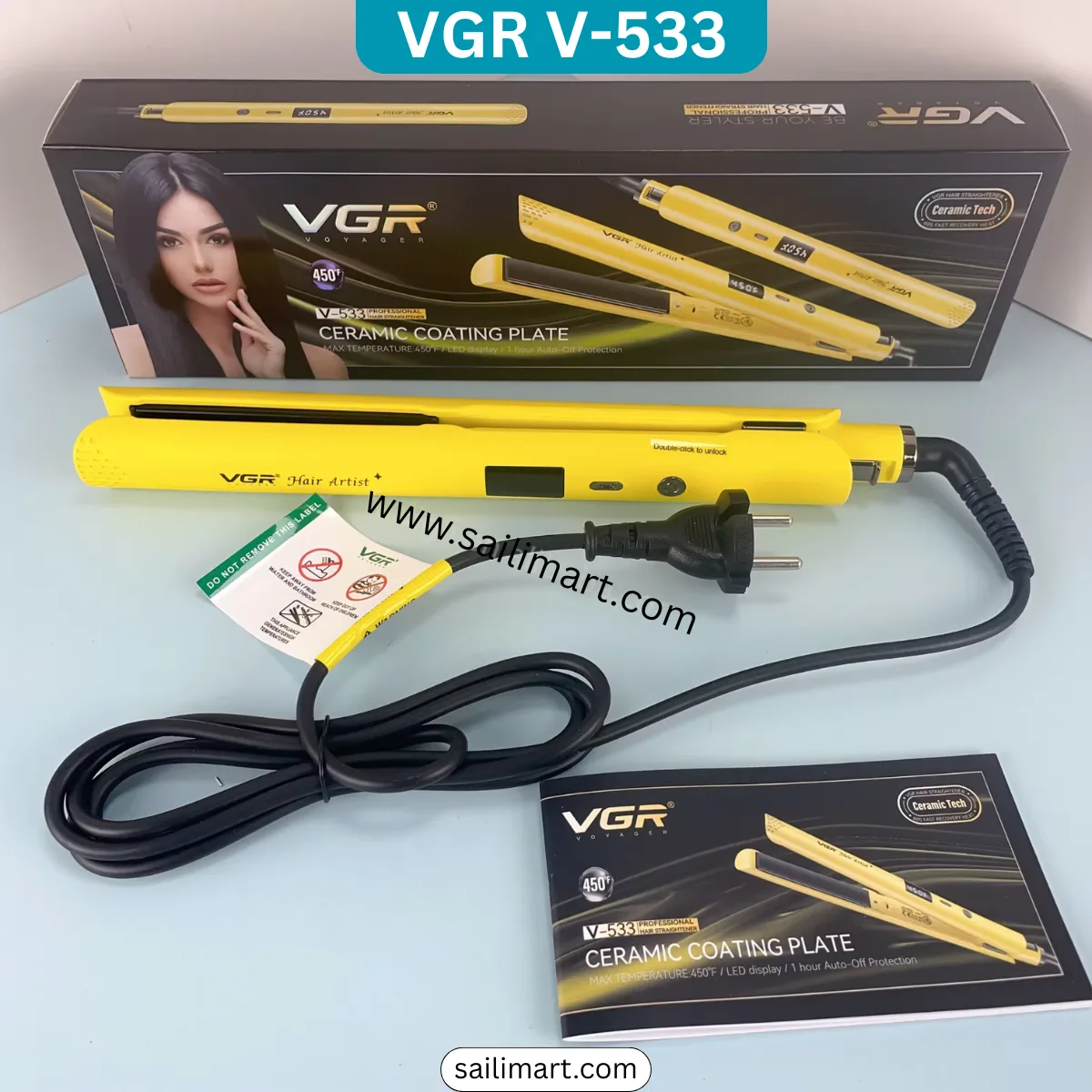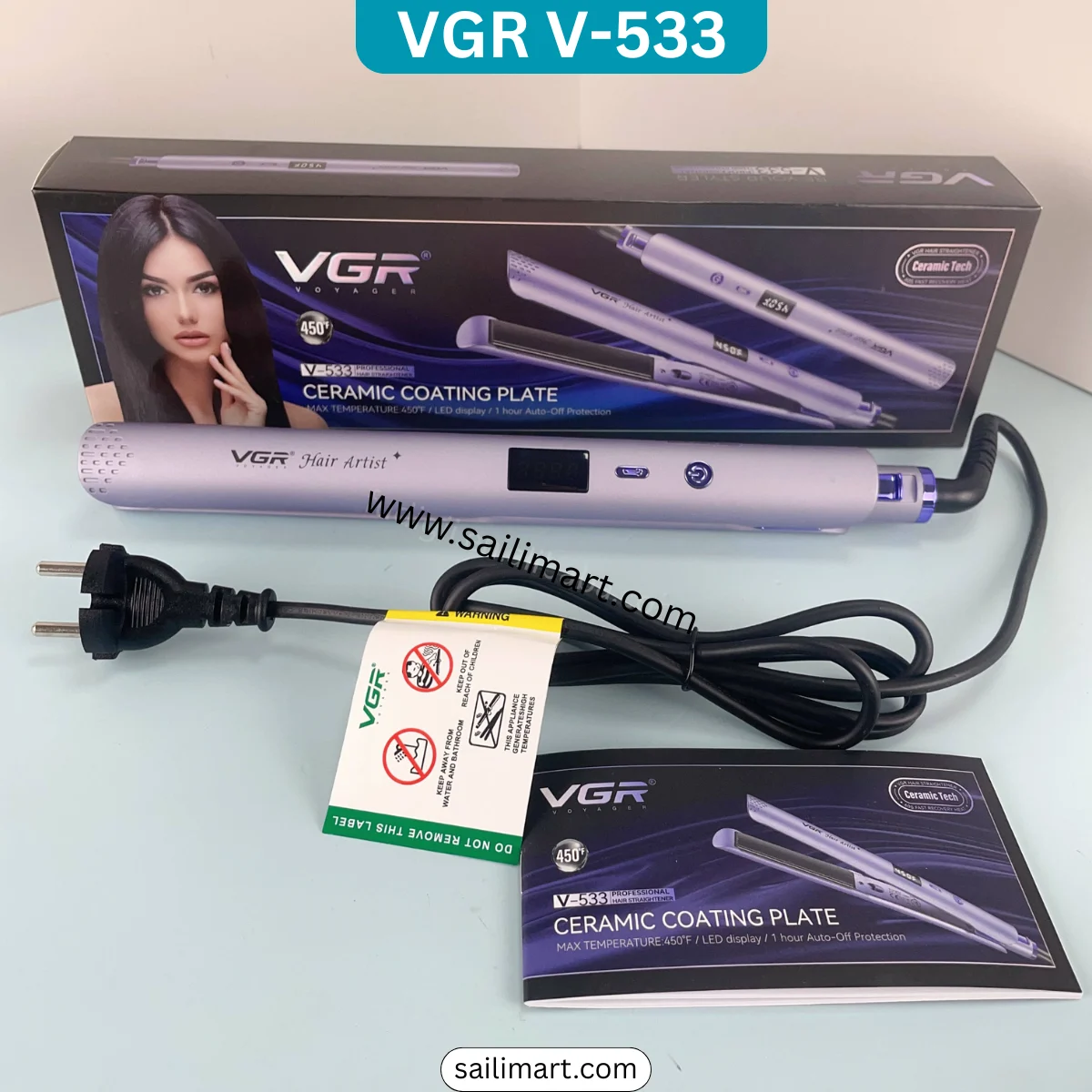 The VGR V-533 is a professional-grade hair straightener engineered for smooth, sleek results. It features advanced ceramic coated floating plates that glide effortlessly through hair, minimizing damage. With a powerful 50W MCH heater and adjustable temperature settings shown on the LED display, you get precise control for any hair type. Designed for safety and convenience, it includes auto power-off protection and a long 1.8-meter power cord for easy handling in any salon or home setup.