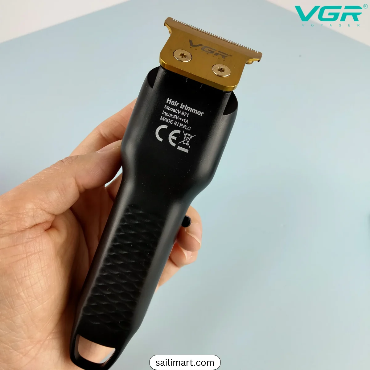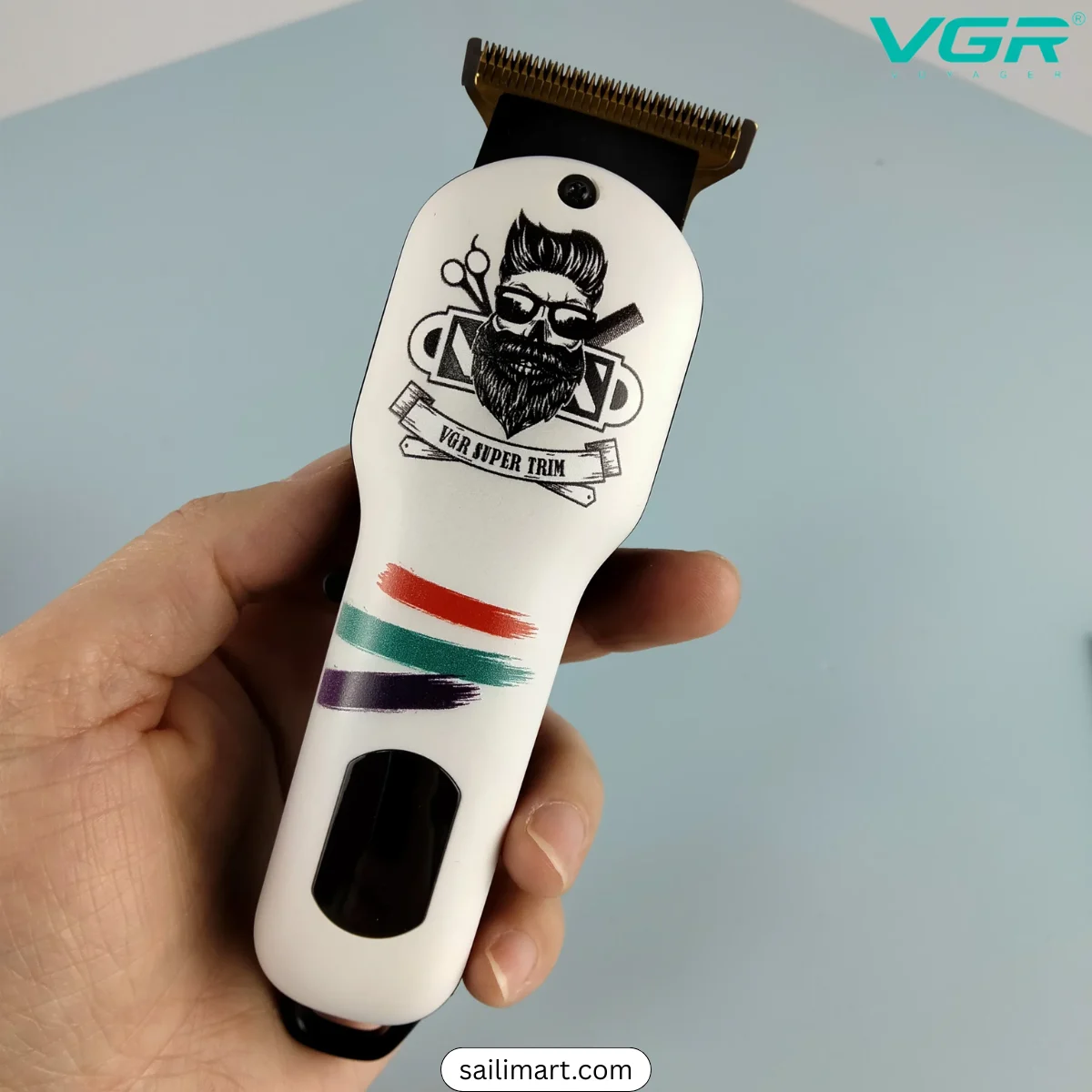 The VGR V-971 is a professional rechargeable hair trimmer designed for precise and comfortable grooming. It features self-sharpening stainless steel blades with an R-shaped design for smooth and skin-friendly trimming. Powered by a 600mAh Li-ion battery, it delivers up to 120 minutes of cordless runtime after just 1.5 hours of charging. The LED digital display shows battery status, and it supports both corded and cordless use with convenient USB Type-C charging.